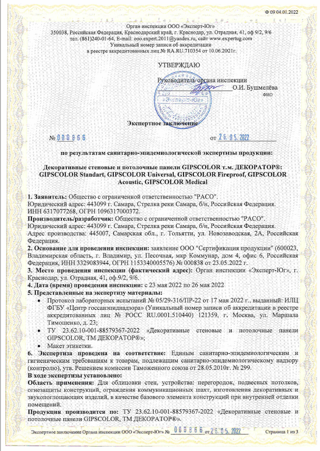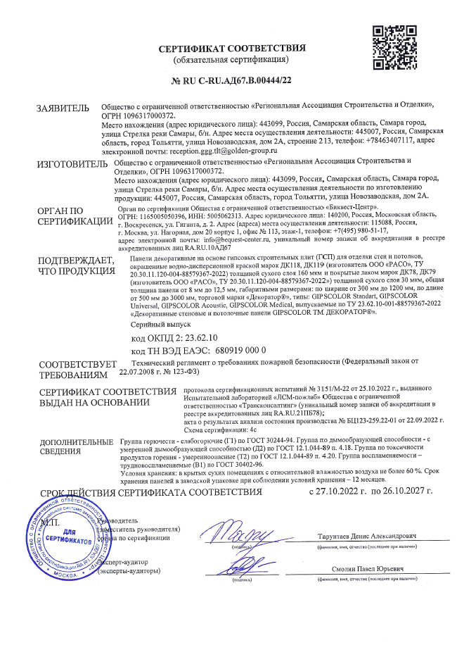 Потолочные панели GIPSCOLOR