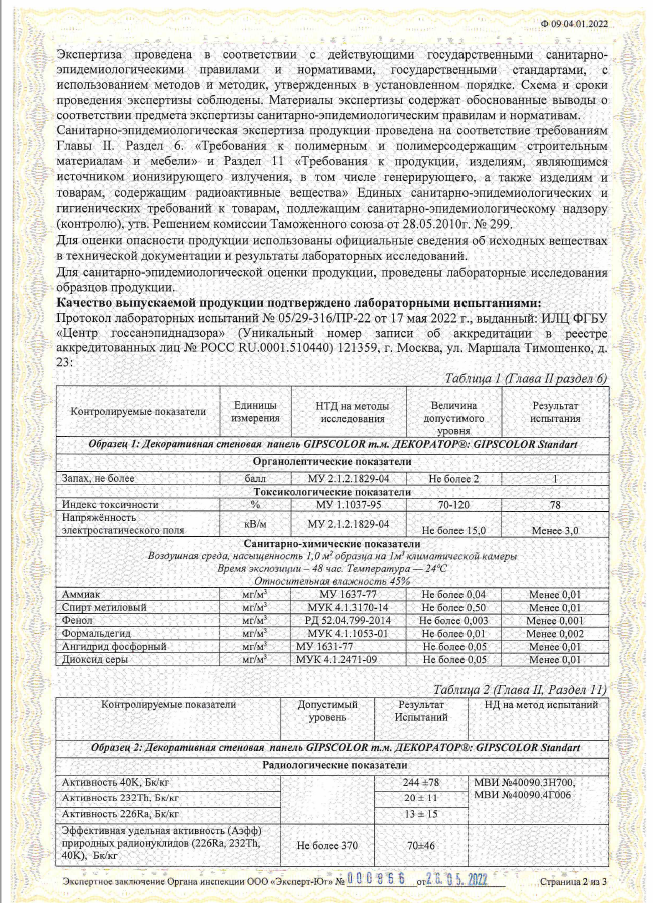 Экологичность плит Gipscolor